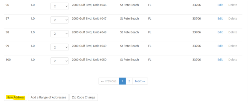 Scroll down to the bottom of the page and click New Address.