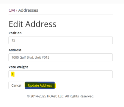 Step 4: Enter the correct vote weight in the designated field.