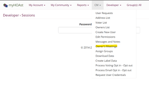 Step 1: Go to CM and click on “Owner’s Meetings.”