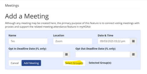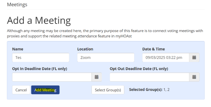 ➡️ Next Step: After creating the meeting, you can proceed with setting up your vote by following the “How to Set Up a Vote” guide.