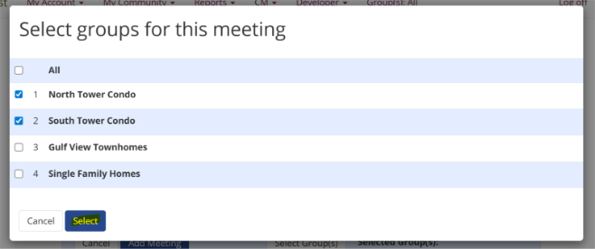 Here you’ll see a list of all meetings your association has created.