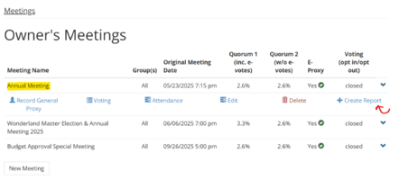 - Locate the ballot you want to report on (e.g., Annual Meeting).