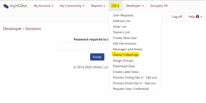 Go to CM > Owner Meetings.