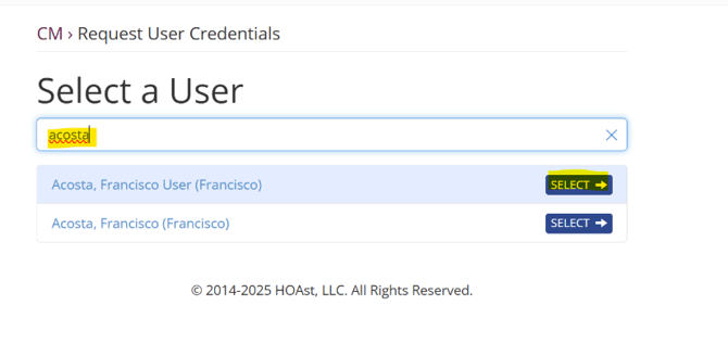 Step 1: Go to CM > Request User Credentials.